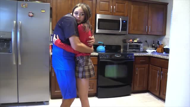 I kneel in front of him and deep throat his dick in a sloppy messy blowjob until he cums on my tits