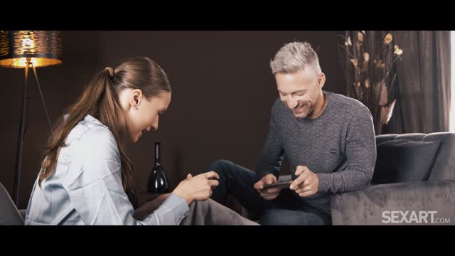 Horny girl with small tits fucked by old man when her boyfriend went out